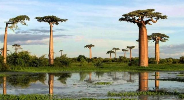 تشتهر مدغشقر بأشجار الباوباب الشاهقة، الشجرة الوطنية لمدغشقر. ينتفخ جذع الشجرة السميك والمستقيم ليأخذ شكل زجاجة أثناء تجميع مياه الأمطار. تُعرف شجرة الباوباب باسم “شجرة الحياة”، فهي مورد حيوي يوفر الغذاء والماء والمأوى والفوائد الطبية للإنسان والحيوان على حد سواء.