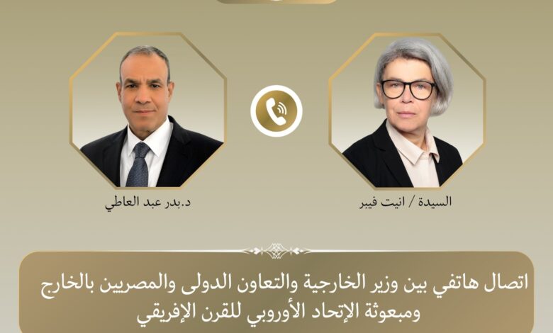 أكمل القراءة »جرى اتصال هاتفي اليوم، بين الدكتور بدر عبد العاطي وزير الخارجية والتعاون الدولي والمصريين بالخارج، وآنيت فيبر مبعوثة الاتحاد الأوروبي…